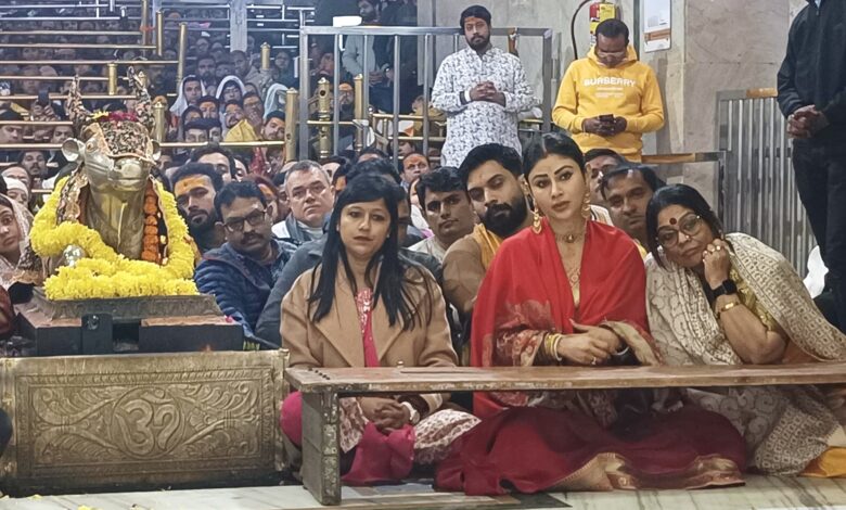 उज्जैन।महाकाल मंदिर में प्रतिदिन नेता, अभिनेता,एवं VIP के दर्शन करने का तांता लगा रहता हें। शनिवार सुबह अभिनेत्री मोनी रॉय सपरिवार महाकाल मंदिर में भस्म आरती में सम्मिलित हुयी। मोनी रॉय ने मीडिया को बताया कि पहली बार उन्हें बाबा महाकाल राजा के दर्शन इतने अच्छे से हुए, वहीं भस्म आरती में शामिल होने का अनुभव अद्भुत था। उन्होंने बताया कि में इस पल को जीवन भर नहीं भूल पाऊँगी। साथ ही महाकाल मंदिर प्रशासन को इतनी अच्छी व्यवस्था के लिए धन्यवाद दिया। पूजन, यश पुजारी द्वारा संपन्न कराया गया।