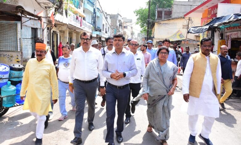 कोयला फाटक से छत्रीचौक तक हो रहे मार्ग चौड़ीकरण को लेकर सोमवार को प्रशासनिक अधिकारियों एवम् जनप्रतिनिधियों ने किया निरीक्षण।